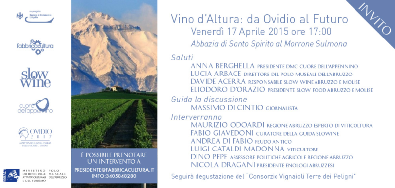La cornice era quella della splendida Abbazia di Santo Spirito a Morrone Sulmona (AQ): gli “eroici” produttori del vino d’altura abruzzese hanno avuto un confronto sulle rispettive esperienze e ufficializzato la nascita di due organismi che di quel vino vorranno essere artefici, ambasciatori e testimoni.